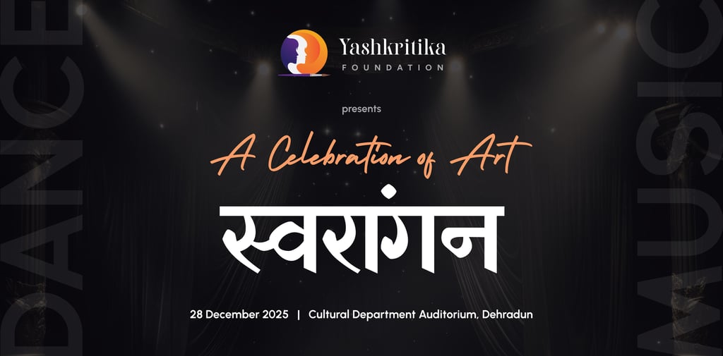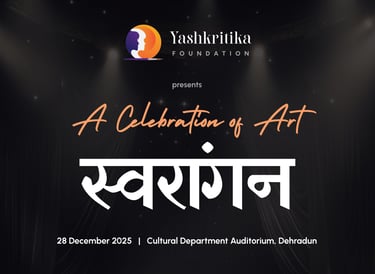 Yashkritika Foundation proudly organized its very first performing arts cultural extravaganza, “Swarangan”, on 28 December 2025 at the Cultural Department Auditorium, Dehradun. True to its name, Swarangan was a heartfelt celebration of rhythm, movement, and artistic expression, and an unforgettable milestone in the foundation’s journey.